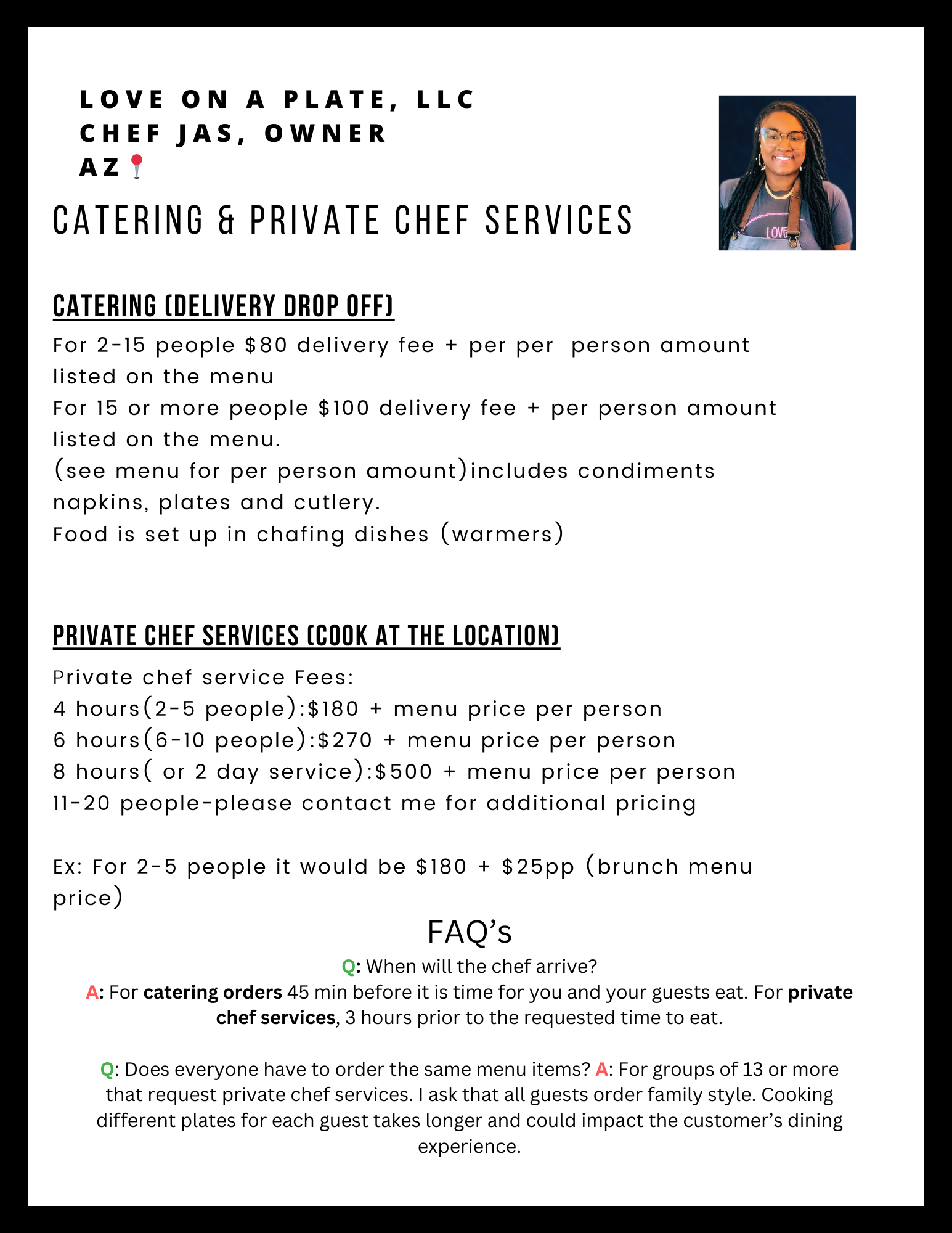 CHEF JAS OFFERS TWO SERVICES: