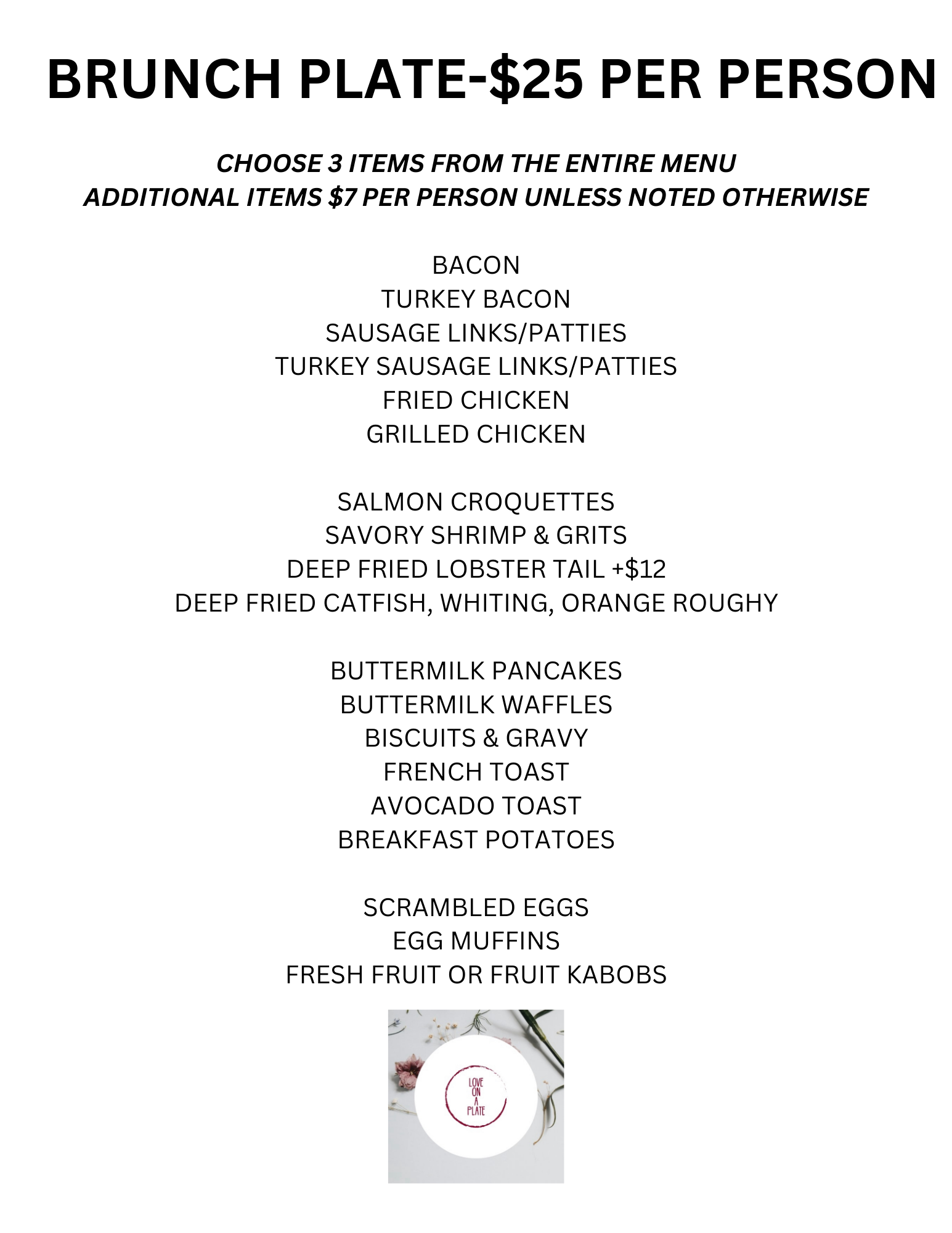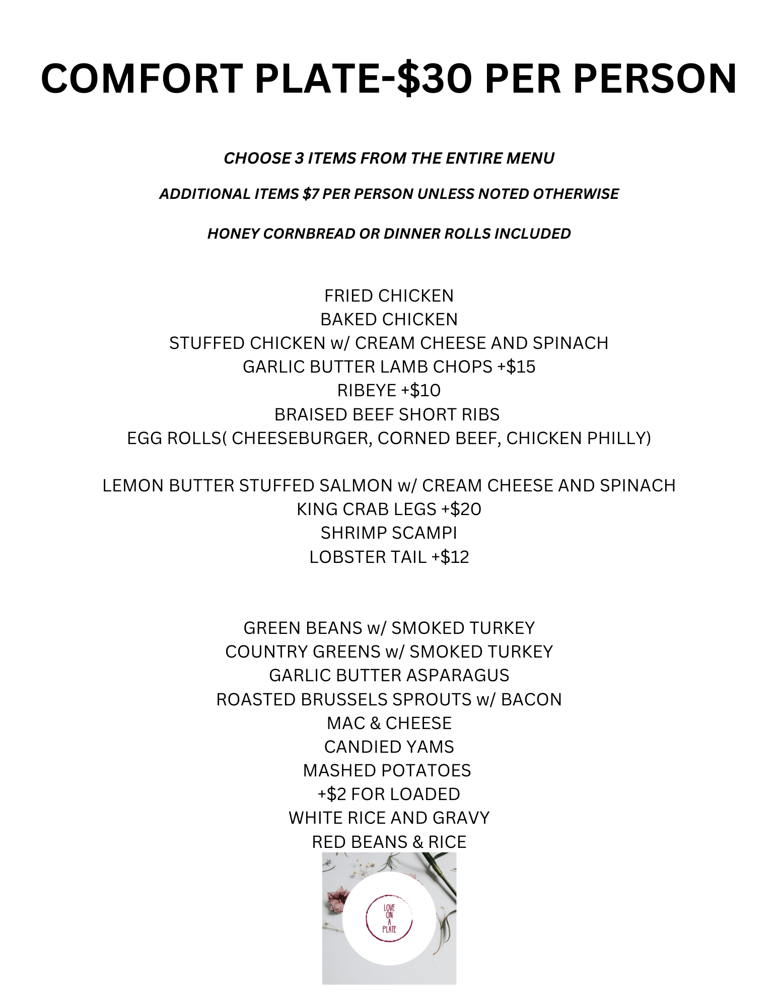 AN INFORMATION SHEET AND MENU'S ARE LISTED BELOW